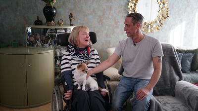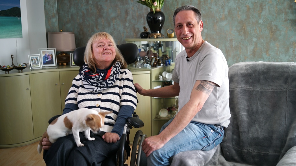 Karen Hensel kann weder sprechen noch sich bewegen: Sie hat eine Cerebralparese mit ausgeprägter Spastik. Oliver Stecher hat Spinale Muskelatrophie und braucht Hilfe beim Aufstehen, Anziehen und Waschen. Dank der Unterstützung einer 24-Stunden-Assistenz führen sie ein selbstbestimmtes Leben. Beide leben in ihrer eigenen Wohnung und werden rund um die Uhr von wechselnden Assistenten unterstützt – sowohl im Alltag als auch in der Freizeit. Selbst in seinem Beruf als Bürokaufmann wird Oliver Stecher von persönlichen Assistenten unterstützt. Die Dokumentation "Einfach Mensch: Pflege, die Freiheit bedeutet" begleitet am Freitag, 7. November, um 11.35 Uhr, den Alltag von Karen Hensel und Oliver Stecher.