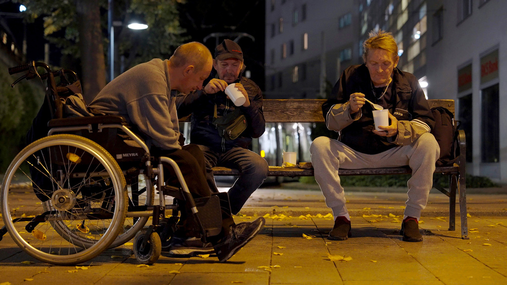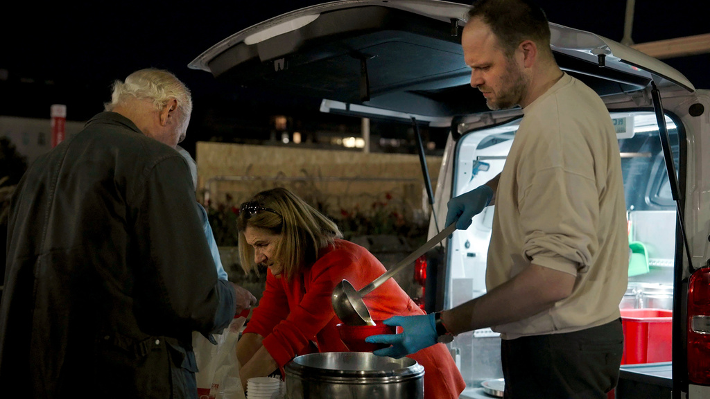 Jenen Menschen, die sich noch nicht wie Sandra von der Wohnungslosigkeit befreien konnten, hilft der Canisibus. Jeden Abend, auch an Wochenenden und Feiertagen, fährt er durch Wien, um Menschen mit heißer Suppe und Brot zu versorgen. Für viele der bis zu 400 Gäste täglich ist dies die einzige warme Mahlzeit des Tages. Die zahlreichen freiwilligen Helferinnen und Helfer sind dabei immer mit großem Engagement und viel Mitgefühl unterwegs. Neben der Essensausgabe sind sie oft auch Zuhörerinnen und Seelsorger.